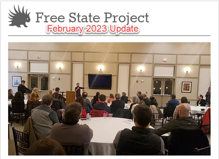 If you want to "Test Drive" the Free State Project Newsletter Click HERE for the Update for February 2023. You might be surprised... There is never a dull moment in the Free State... Also.. Don't forget the Liberty Forum is coming up next week. If you ever wanted to check out New Hampshire and the Free State Project then start with their Liberty Forum event in Manchester, NH on March 3rd-5th. Get tickets at NHLibertyForum.com