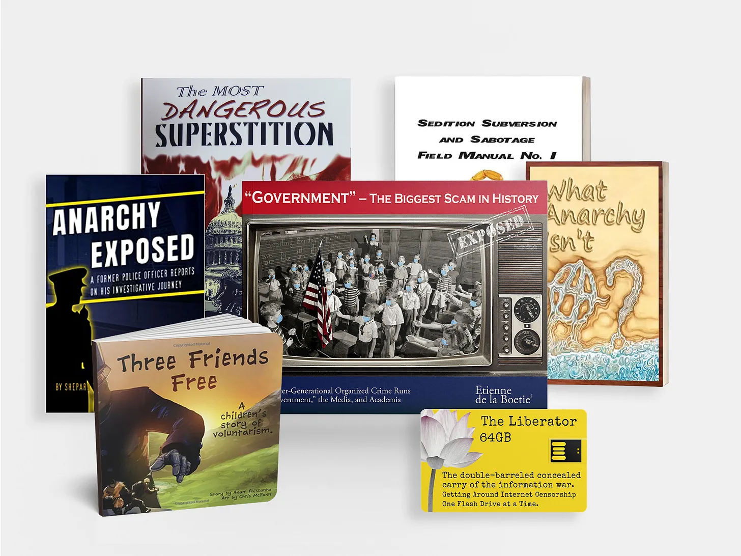 Give me Liberty... and give me more! The Everything Bundle includes the latest version of our flagship book on government, along with a collection of potentially life-altering introductions to voluntaryism, agorism and peaceful anarchy.