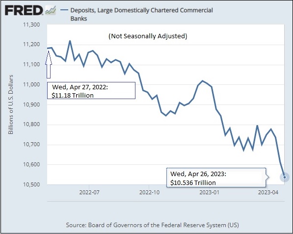 Since the banking crisis began making headlines at expensive media real estate, the narrative has been that deposits are fleeing the small commercial banks and flooding into the biggest banks that are perceived as too-big-to-fail and thus offer a safer venue for deposits.