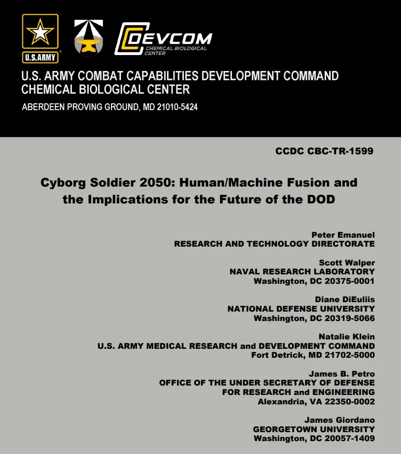 Cyborg Soldier 2050: Human/Machine Fusion and the Implications for the Future of the DOD