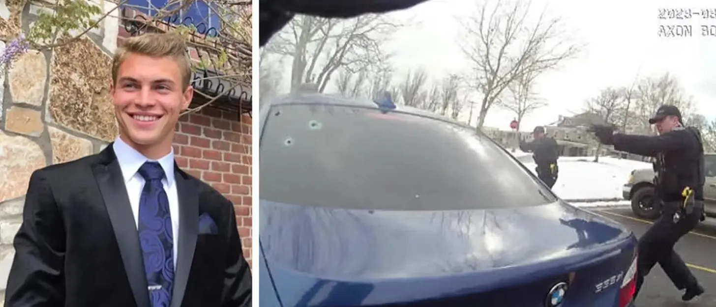 For five seconds, five officers emptied their pistols into a young man to enforce license plate registration in Utah.
