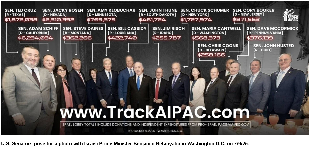The US Senate, of which Tim Sheehy is a member, is rife with politicians who have received tens of millions of dollars from Israel for their campaigns.
