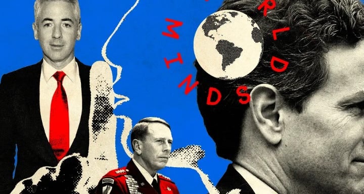 With just 1,500 members, World.Minds is a concentrated collective of wealth and power with a roster that includes former Treasury Secretary Timothy Geithner and retired Gen. David Petraeus, philosophers Peter Singer and Daniel Dennett, and billionaires Bill Ackman, Henry Kravis, and Alex Karp. Under its charter, at least 51 percent of the community must work in the sciences to ensure that it doesn’t “devolve into a business club.”