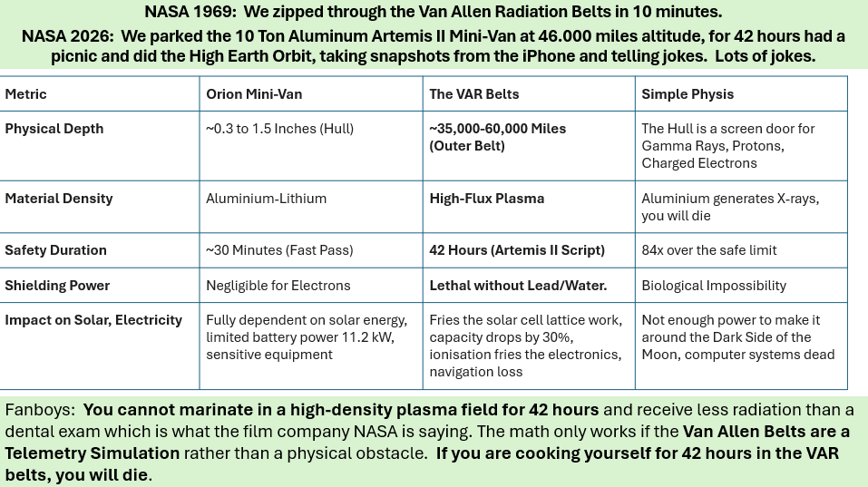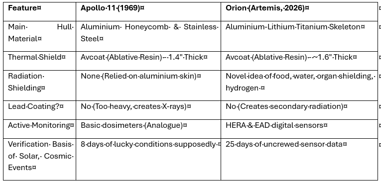 If you believe that 3 feet of lead shielding is the only way to survive, then Artemis II-Orion is a suicide mission. NASA’s gamble is that hydrogen (in food and water) and selective shield protection is an improvement on lead, even if it leaves the crew exposed to constant radiation.