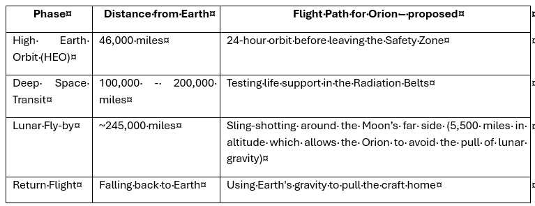 3. The only successful test of the Artemis II-Orion combination was in December 2022, an unmanned mission, 269,000 miles into space (fact). There are lots of problems with this claim, but we can accept this at face value. This was unmanned, not manned. The telemetrics for unmanned missions are not directly relevant for human space travel (fact).