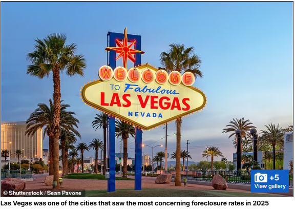 Florida appeared again on the list with Cape Coral (one in 189), joined by Atlantic City, New Jersey, where one in every 192 housing units faced a foreclosure filing — signaling mounting stress in both Sun Belt and legacy markets alike.