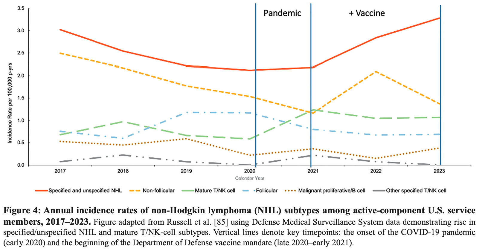 Longitudinal surveillance data documented a post-2021 increase in T/NK-cell lymphomas coinciding with the transition from the pre-pandemic period to near-universal COVID-19 vaccination in this highly structured population.
