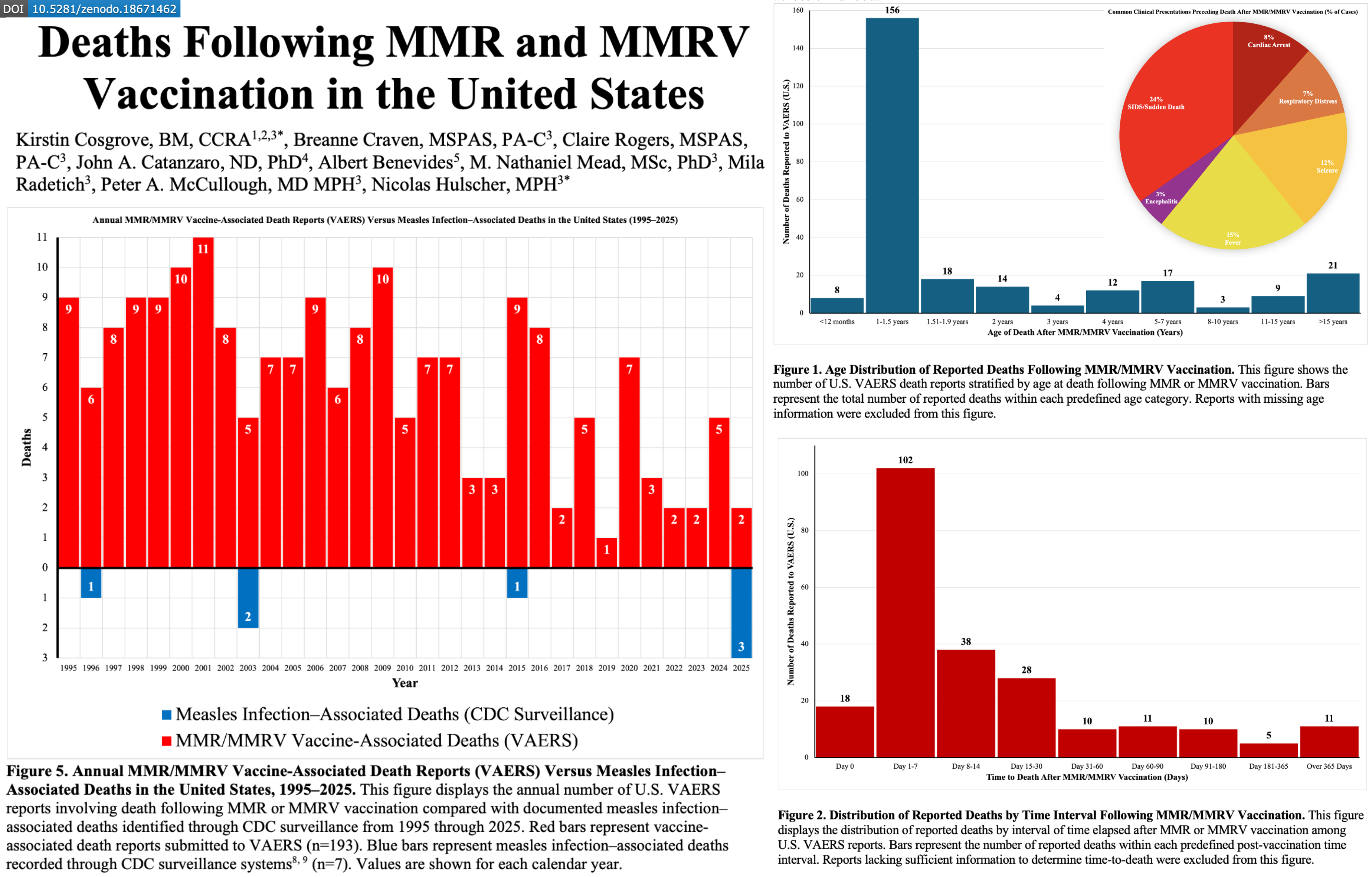 Now, our new McCullough Foundation study titled “Deaths Following MMR and MMRV Vaccination in the United States,” authored by Kirstin Cosgrove, Breanne Craven, Claire Rogers, John A. Catanzaro, Albert Benevides, M. Nathaniel Mead, Mila Radetich, Peter A. McCullough, and Nicolas Hulscher (myself), takes a comprehensive look at reported fatal outcomes following MMR and MMRV vaccination in the United States, doing the work that our public health agencies should have done many years ago.