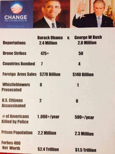 They stood silent as his administration used torture, put corporate lobbyists in key administration positions, prosecuted whistle-blowers who brought government corruption to light, imprisoned non-violent pot smokers in for-profit prisons where they worked as slave labor, assassinated American citizens without trial, and committed scores of other crimes.