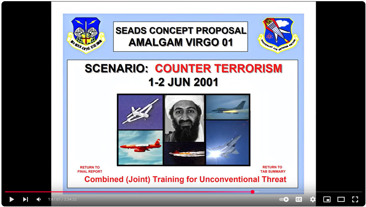 In what many believe to be the “dry run” for 9-11, a military war game takes place on June 1-2nd, 2001 which uses remotely piloted drones to simulate an attack by Osama Bin Ladin. The war game features Unmanned Aerial Vehicles (UAVs) that are remotely piloted by a C-130 in the exercise, similar to what is believed to have happened on 9-11, where the original Boeing 767s were landed and replaced by other remotely piloted aircraft that were crashed into the WTC complex and Pentagon.