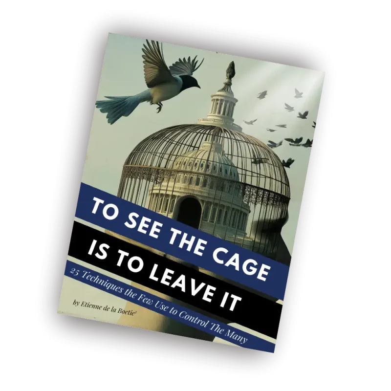 To See the Cage Is to Leave It, author and truth advocate Etienne de la Boetie2 takes you deep inside the methods and tricks used to manufacture our consent—from the classroom to the newsroom, from the ballot box to the battlefield. This book pulls back the curtain on the world’s most successful mass manipulation: Statism—the indoctrinated, pseudo-religious belief in the desirability, necessity and legitimacy of “government”.