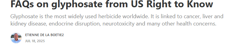 Glyphosate is the most widely used herbicide worldwide. It is linked to cancer, liver and kidney disease, endocrine disruption, neurotoxicity and many other health concerns.