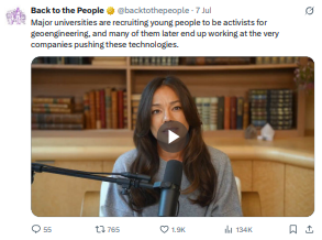 In addition to internal files and historical documentation, they directed me to the Biden-Harris administration’s mandated , which outlines the federal agencies currently involved in geoengineering, climate intervention, solar radiation management (SRM), and stratospheric aerosol injection (SAI). These include NOAA, NASA, the National Science Foundation (NSF), the U.S. Geological Survey (USGS), and the Department of Energy (DOE).