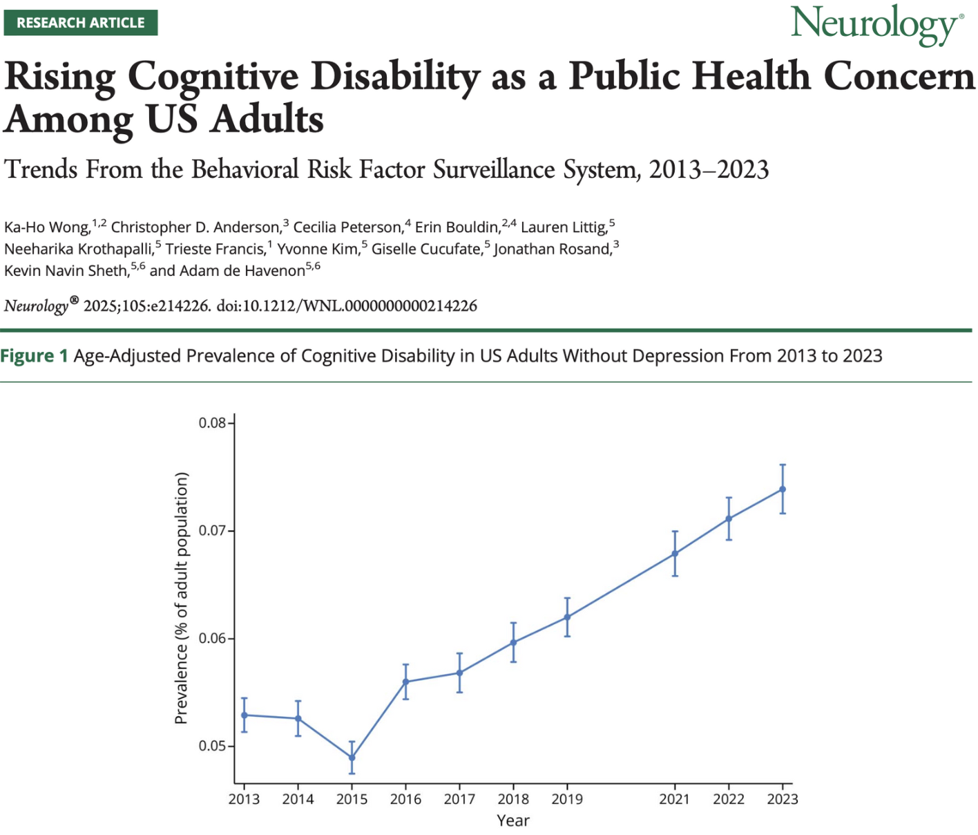 A major new Neurology study analyzing more than 4.5 million U.S. adults has uncovered a striking trend: self-reported cognitive disability—difficulty concentrating, remembering, or making decisions—has surged by 40% over the past decade…