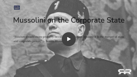 A quote commonly attributed to Benito Mussolini, “Fascism should more properly be called corporatism because it is the merger of state and corporate power