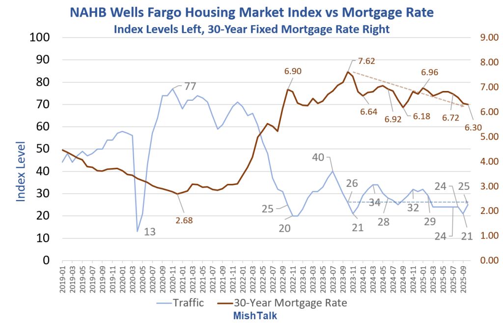 The traffic index is now 25 despite builder incentives and a 1.32 percentage point drop in mortgage rates…