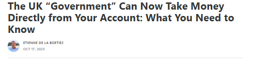The UK “Government” Can Now Take Money Directly from Your Account: What You Need to Know