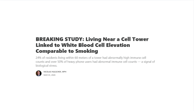 BREAKING STUDY: Living Near a Cell Tower Linked to White Blood Cell Elevation Comparable to Smoking