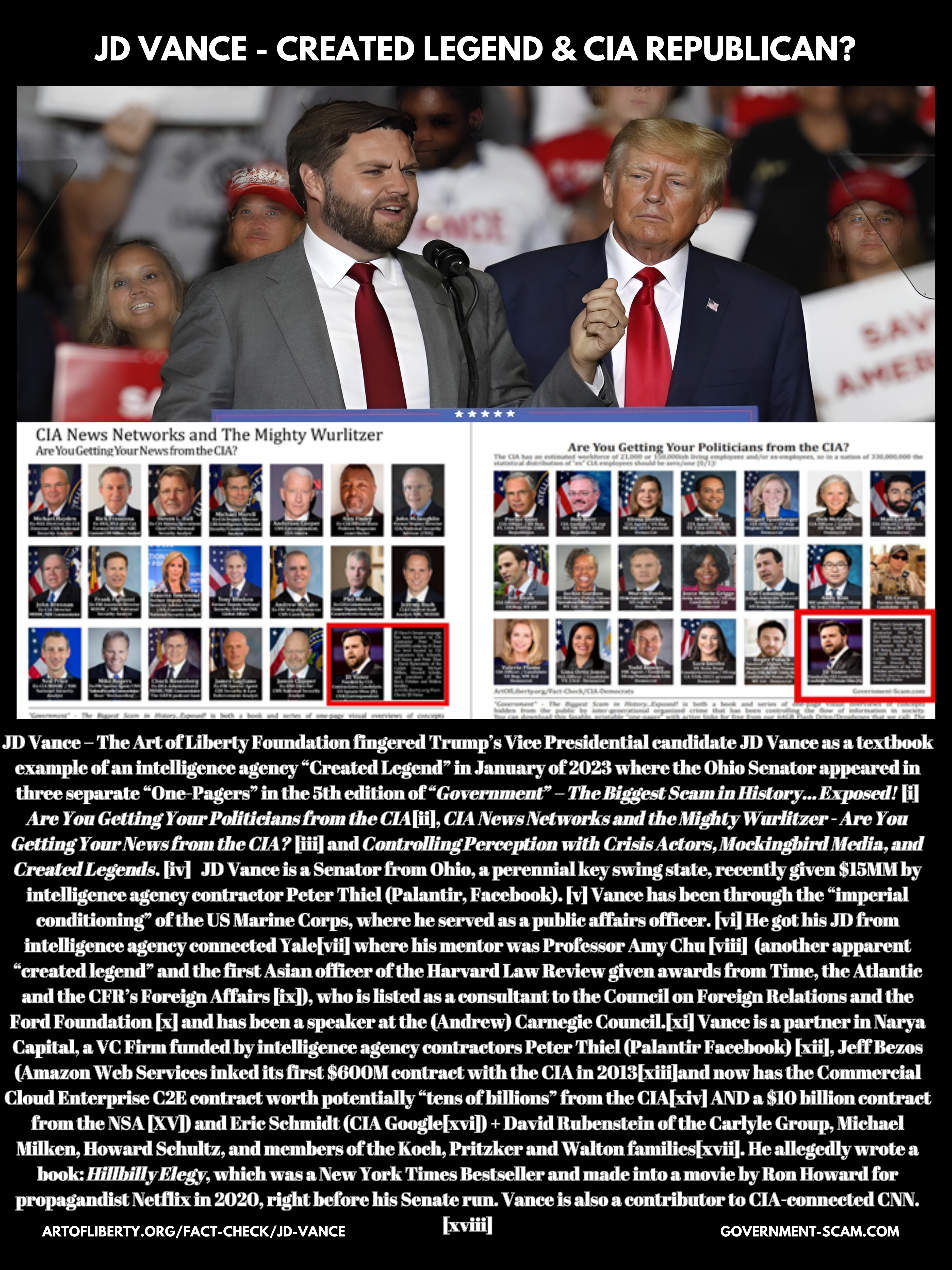 Bitcoin is not a currency. Crypto is not a currency. It's just all about holding it like digital gold. Don't worry about actually trying to defeat the federal reserve system by getting off the dollar, just hold Bitcoin or other current cryptos like an investment. and hold on to stable coins, which are backed by BlackRock and others and Larry Fink, right? This is a game they're running. So again, JD Vance, he was a 39 year old senator from Ohio. He was in attendance at this fundraiser for Trump back in June. So even before he got picked, he was already surrounding with he was already with these people. Elon Musk also recently encouraged Trump to pick Vance. And a few weeks later, that's exactly what Trump did at the RNC. So JD Vance claims that after he heard Peter Thiel gave a speech at Yale in 2011, he was so inspired that he had to get into the big tech firms. And he went on to found a biotech company called Circuit Therapeutics. And he was told that this was, or excuse me, the New York Times said that this was a quote, favor to Peter.