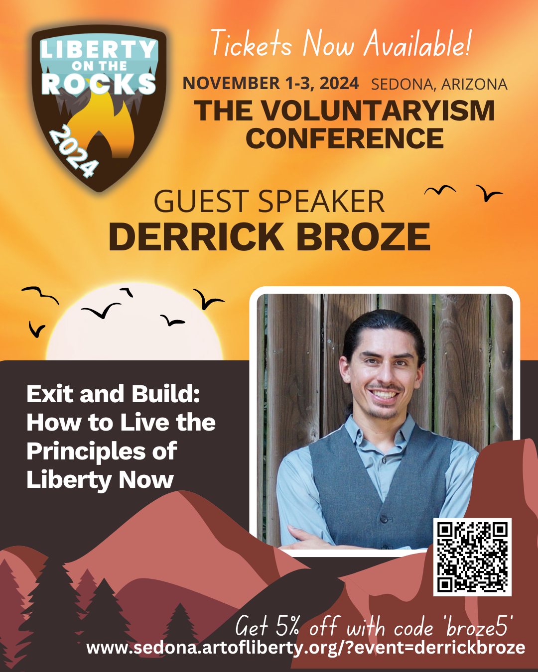 Derrick Broze will be a speaker at Liberty on the Rocks - Sedona - The Voluntaryism Conference on November 1st-3rd in Sedona on streaming globally.
