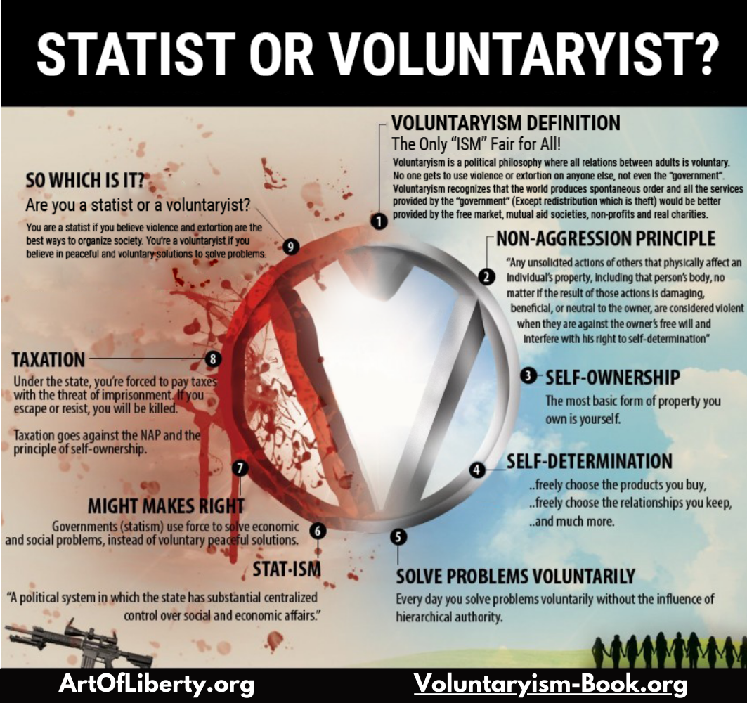 The alternative to voluntaryism is something called Statism, and Statism is essentially the indoctrinated belief in having a state.