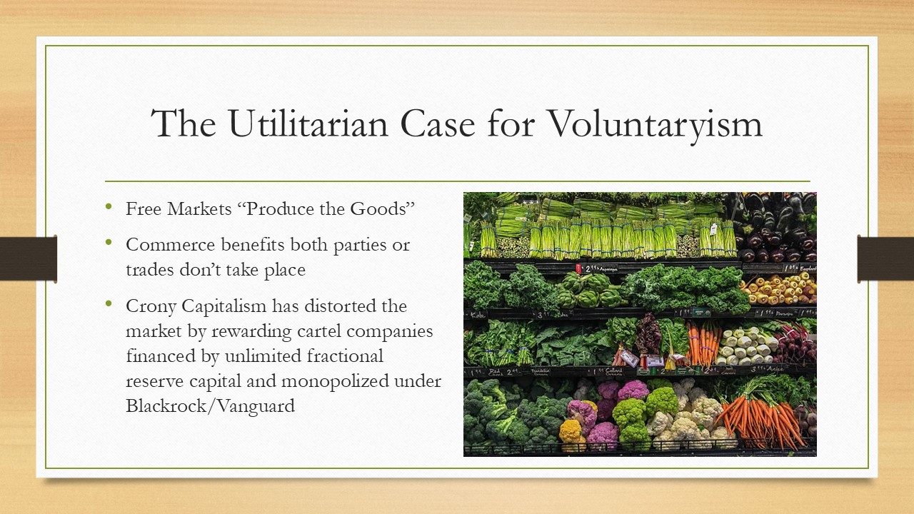 There is a utilitarian case for voluntaryism. Free markets produce the goods!