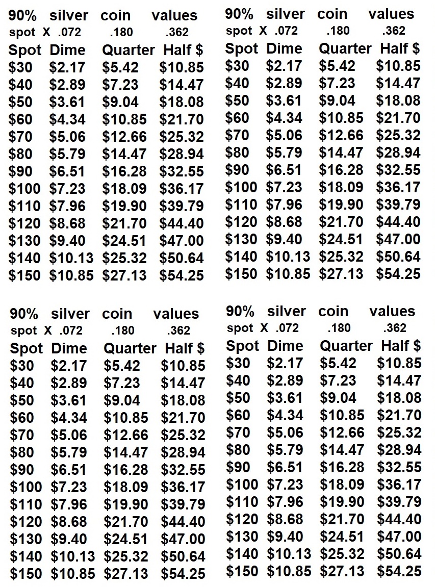 You can print some of these sheets to keep track of the value of silver related to FRNs. This will be useful at farmers markets and swap meets. Eventually, nobody will care about the FRNs, and everyday purchases will be priced in silver. (Gold will be for large purchases such as cars, houses, and land.)
