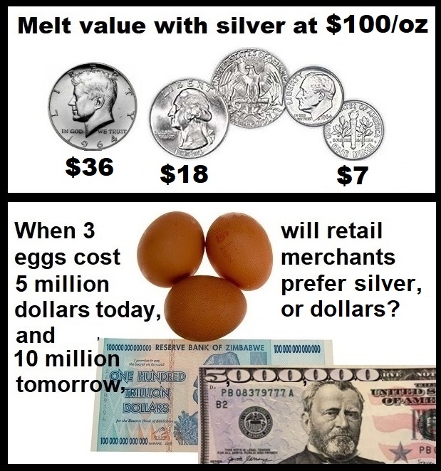 Today, the silver melt value of a 1964 Kennedy Half Dollar is $36 in debased fiat Federal Reserve Notes.