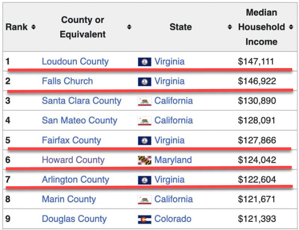 And the other thing that’s crazy, a lot of people don’t realize this, but four FIVE out of the top 10 wealthiest suburbs in the counties in the United States are all right outside of Washington, D.C. And so that’s Loudoun County, Virginia, it’s Fairfax County, Virginia, Arlington County, Virginia, and Prince William County, Maryland. And they lead the nation in fine wine consumption and luxury goods, and it’s amazing.