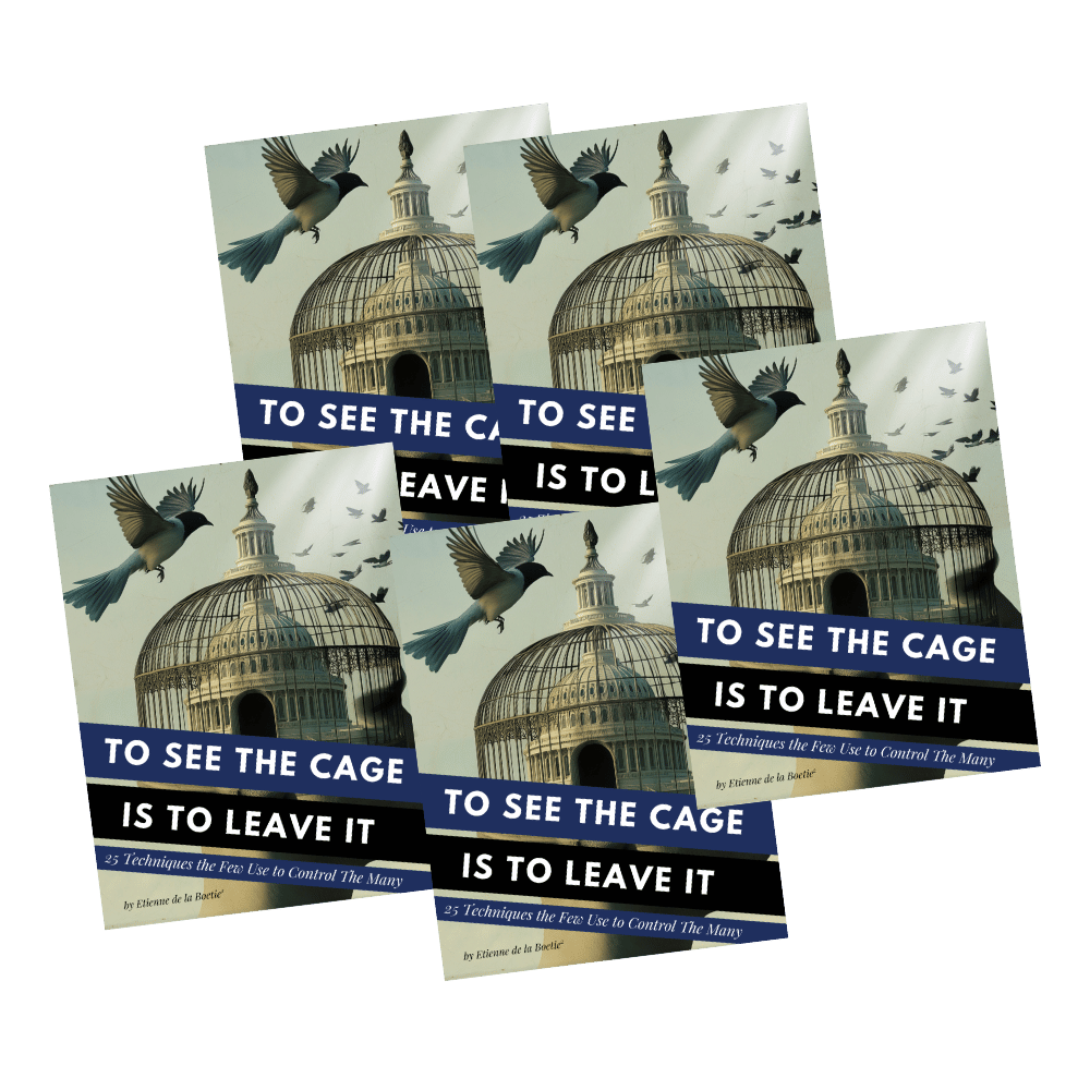 There is a retired secretary in North Carolina who is about to distribute 258 copies of To See the Cage Is to Leave It – 25 Techniques the Few Use to Control the Many to sheriffs, police chiefs, VIPs, and others in the state. People are using the book to wake up their friends, family, and neighbors. As I said, it is very rare—maybe 0.001% of books are bought in bulk—but since the beginning, over 10% of our sales have been to people buying in large quantities, including those purchasing 258 copies at a time to wake up their communities. Once you flip through the book, you can’t help but see it. The fact that it is so image-rich and uses visualization to make something previously invisible now visible is very powerful.