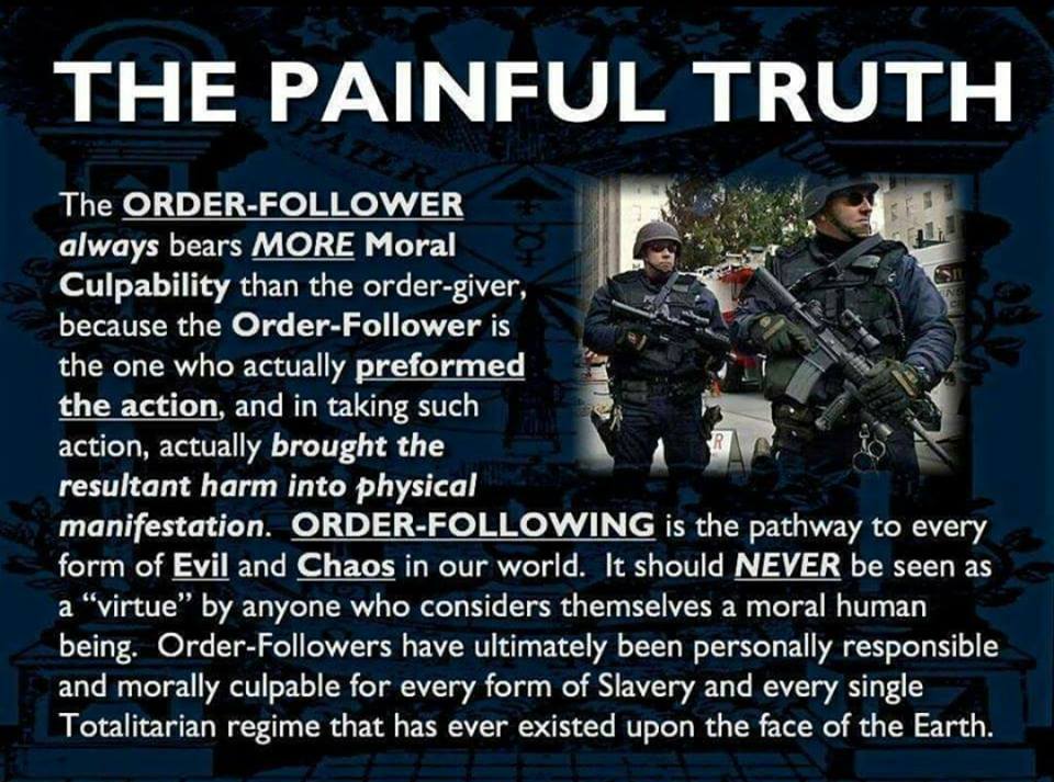 And that’s the stone cold truth. is they’re running these unethically manipulative techniques to produce something called an order follower that will set their morality aside and either murder people for the state in other countries or domestically, in the case of the police, will use violence on peaceful people and throw them in jail for things like smoking plants. or gambling or things that aren’t really, really crimes. And if you want them to goose step, they’ll goose step. If you want them to beat up old ladies and move a crowd back with riot control stuff, they’ll do that.