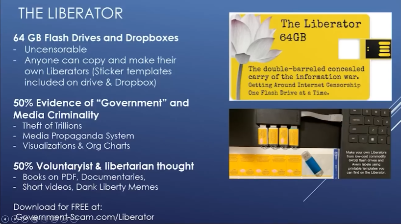 Yeah, man, I appreciate you sending me this care package of the new book and the 64GB Liberator for people who can’t see it. It is a credit card shaped thumb drive. You can actually pop out this side. And it actually plugs into any computer. I was a little surprised that it fit into a USB slot myself, but man, there is some really spicy things on here worth talking about from school shootings.
