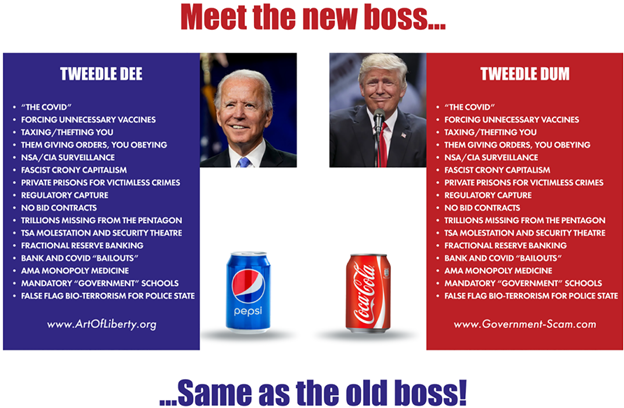 Meet the new boss, same as the old boss, if you really think about it. If you really think about it, Trump and Biden are 100% in lockstep with every single thing that matters to the powers that be. They're 100% in lockstep on fractional reserve banking.