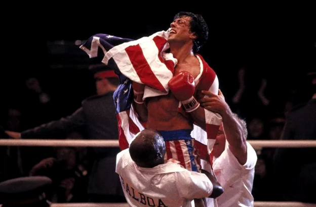 Rocky after he wins his match against the Russians. He's got the American flag over him. Superman's flying through the sky, around the planet, carrying the American flag. It goes on and on and on once you see it you cannot “Unsee it” and then you start seeing you realize.. “Hey!! It's a trick; they're running game on me”