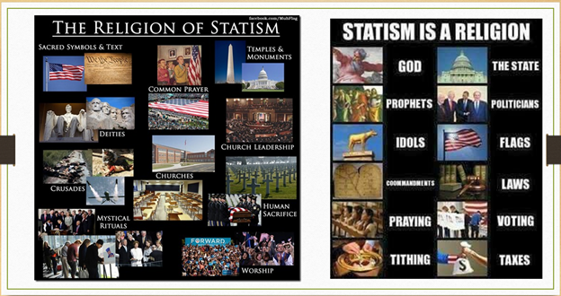 One of the other things the book exposes is that “government” is being indoctrinated into the population as a religion (Statism). Now, it's not being called a religion, But the people who are using the technique to rob and control society are using the exact same techniques as an unethically manipulative religion or a cult.