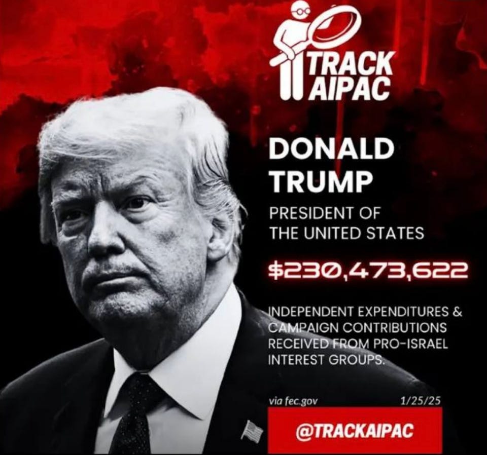 Then he’s elevated into the presidency with hundreds and hundreds of millions of dollars of Zionist money. Right now, it’s over $400,000,000 just from the Adelsons over the two election cycles. So you’ve got a Zionist theatrical agent. You’ve got a Zionist funder, and now he’s transferring—he cranked it up. We were giving 3,000,000,000 a year to Israel.