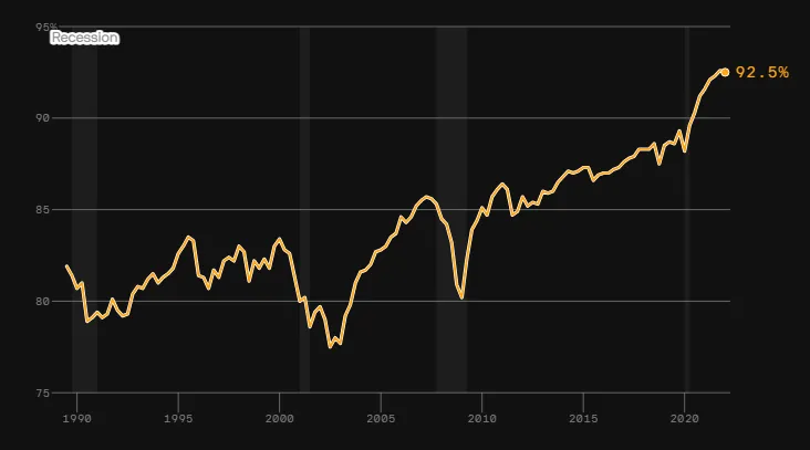 About 93% of U.S. households' stock market wealth is held by the top 10%.