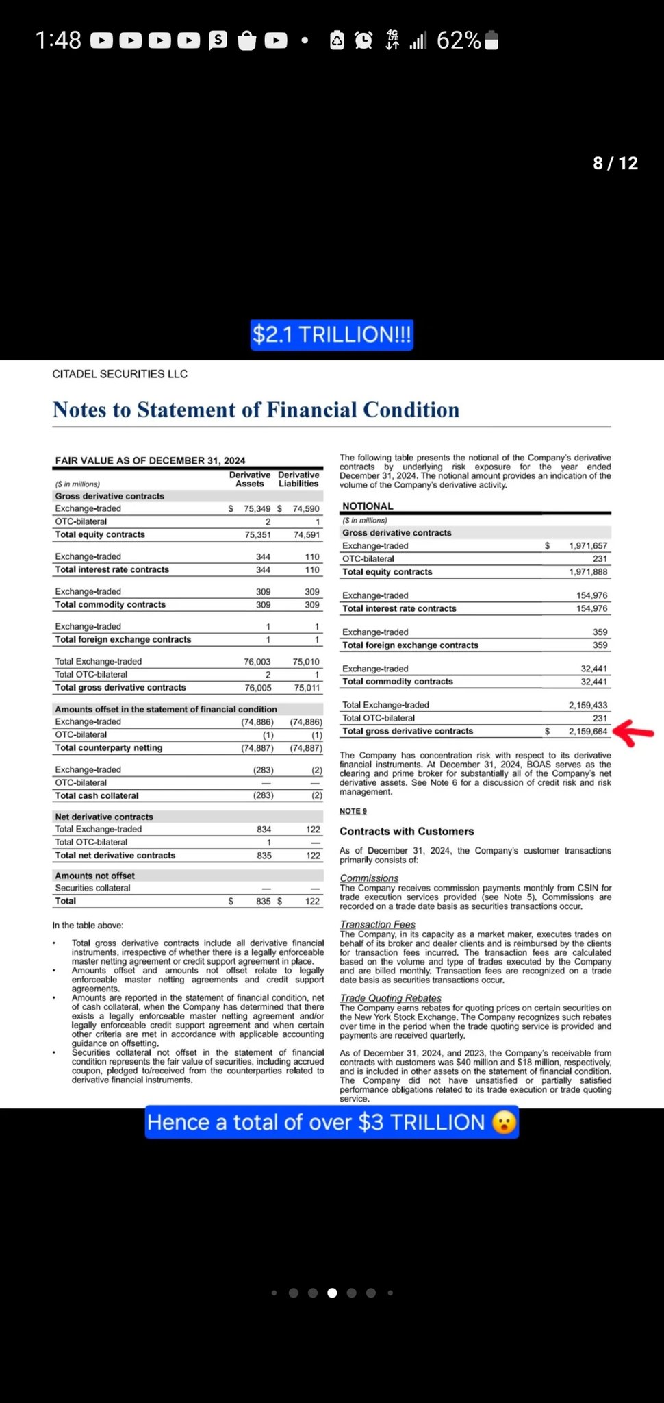 "Citadel’s 2024 statement shows $2.159 TRILLION in gross derivatives....