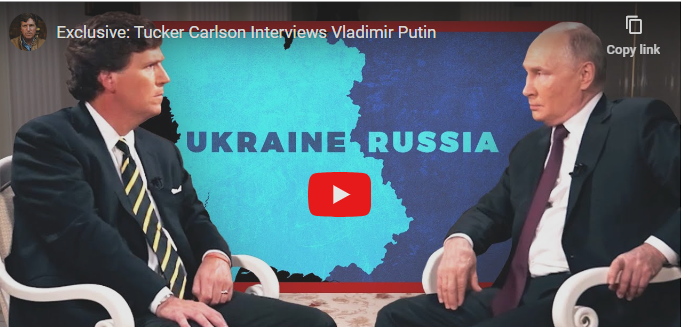 Tucker Carlson’s interview with Vladimir Putin went live about an hour ago. You can watch the full thing on Tucker’s website.