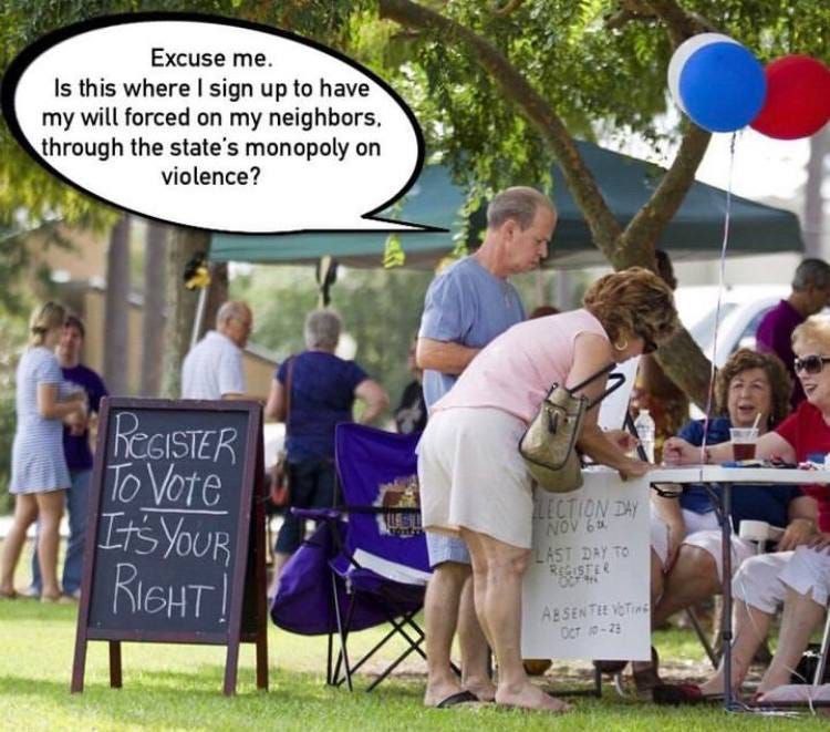 Voluntaryists are saying: “Hey, Let’s not rob anyone!” “Government” is illegitimate and immoral on its face; it is the “technique” being used to rob and control the population.