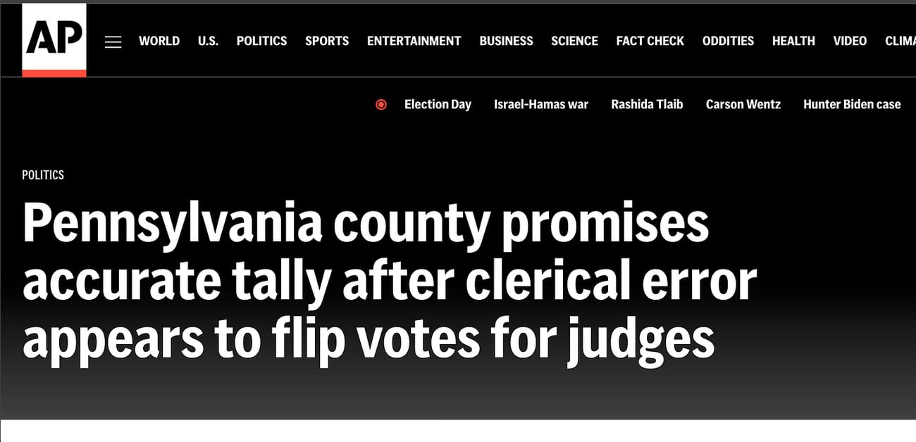 The Right Way is the #1 conservative blog on Substack - recommended by over 225 other Substack authors!Get 20% off for 1 yearThe rampant corruption of America's rigged election systems is even more comically obvious this time around in 2023 - than it was in 2021 and 2020.The voting machines in Pennsylvania were flipping votes for judges of course.From the AP story: Despite the glitch on the printed summary, voters' actual choices were properly recorded by the machines' backend system, and their votes will be tabulated accurately, Dertinger said Thursday afternoon at a news conference in Easton.'What you read and what the computer reads are two different things. The computer does not read the text that is printed out,' he said.The issue affected all the county's voting machines in use Tuesday, estimated at more than 300.Just stop a moment and absorb what the utterly corrupt AP is admitting to you: actual choices were properly recorded by the machines' backend system.
