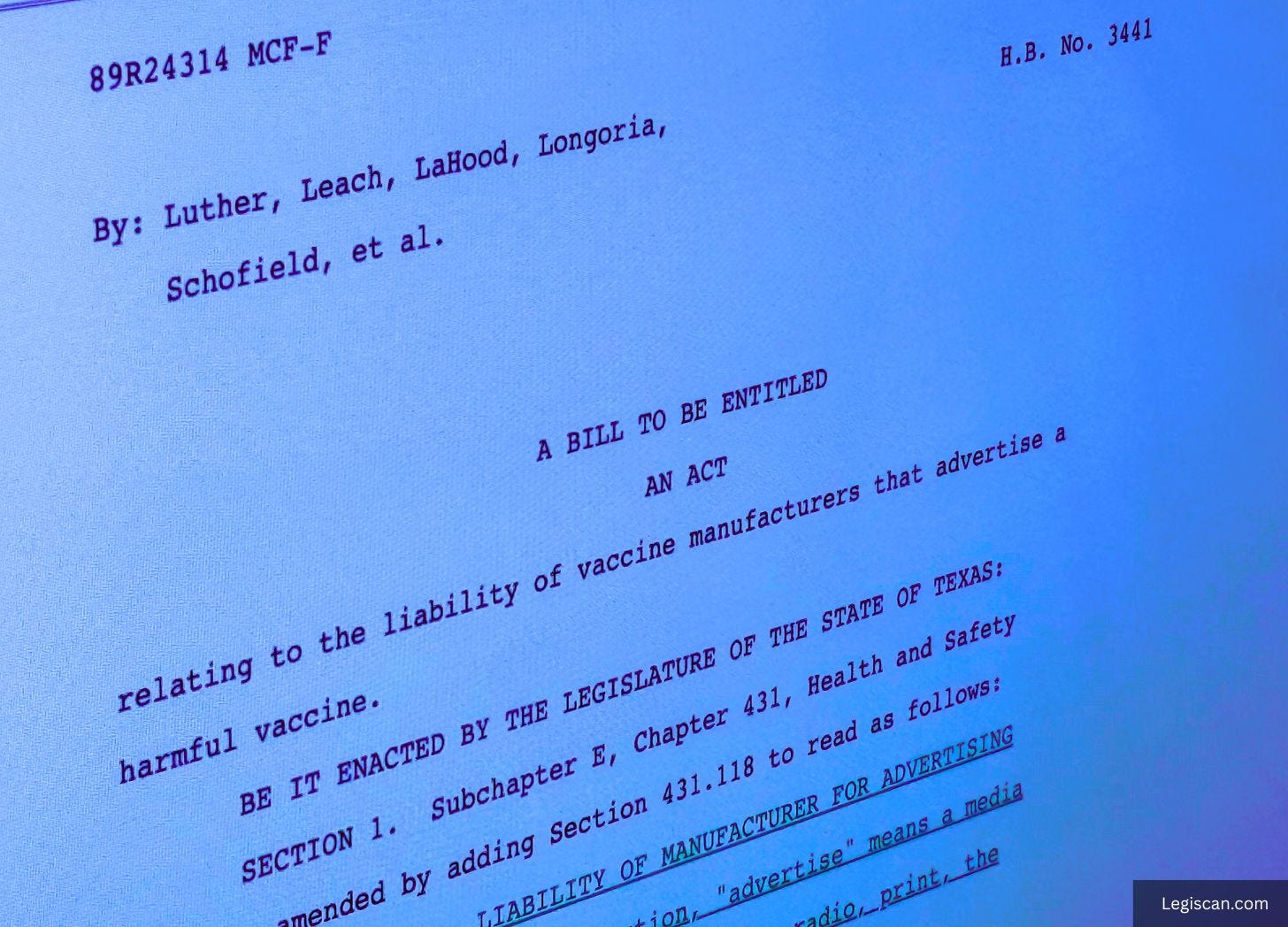 Texas House Passes Bill Allowing Lawsuits Against Vaccine Manufacturers for Harmful Advertising: HB 3441