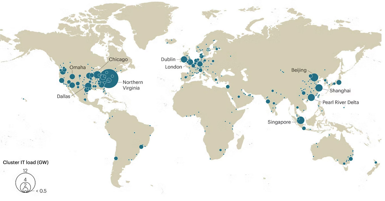 Data centers of the world are not spread evenly. In Virginia, the largest conglomeration of industrial data, their demand for power pulls in a quarter of the state’s electricity.