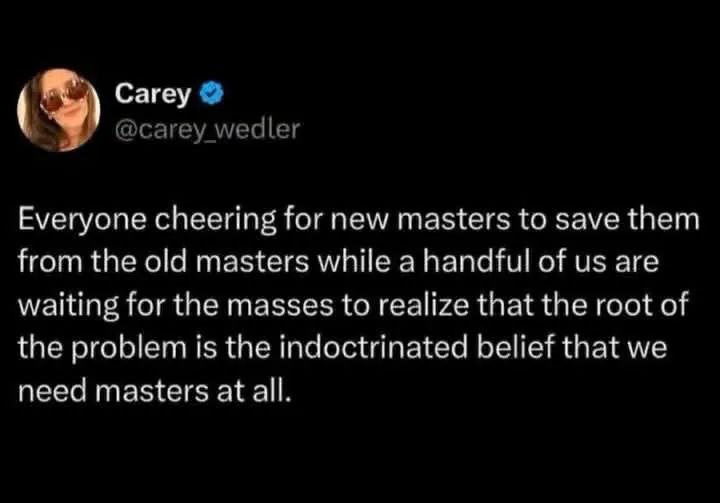 If most of your income goes to someone other than you without you voluntarily making that choice, then you essentially work for that someone more than you work for yourself; against your will no less. You are a slave. And if you can’t admit this fact to yourself, then you are the worst kind of slave: a mentally enslaved one.