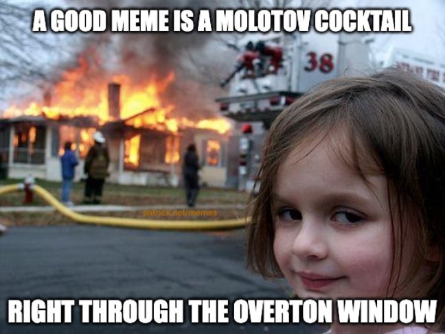 Plus a Good Meme is a Molotov Cocktail Through the Overton Window