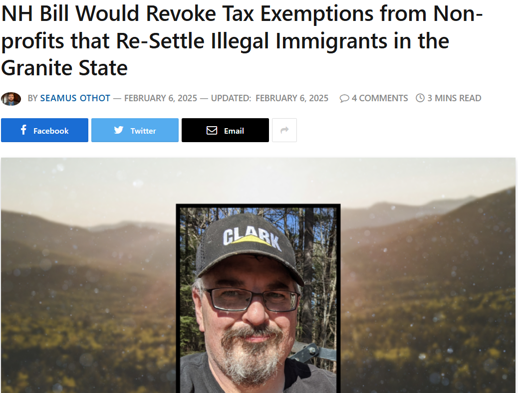 New Hampshire State Rep. Travis Corcoran (R-Weare) is working to pass a bill through the state’s Republican-controlled legislature that would revoke the tax-exempt status from any non-profits that resettle illegal immigrants in the Granite State.