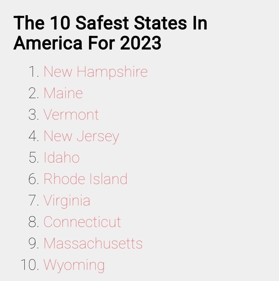 New Hampshire has been named the safest state in America... Again...