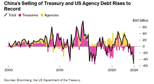 China sold a record amount of Treasury and US agency bonds to buy gold in the first quarter