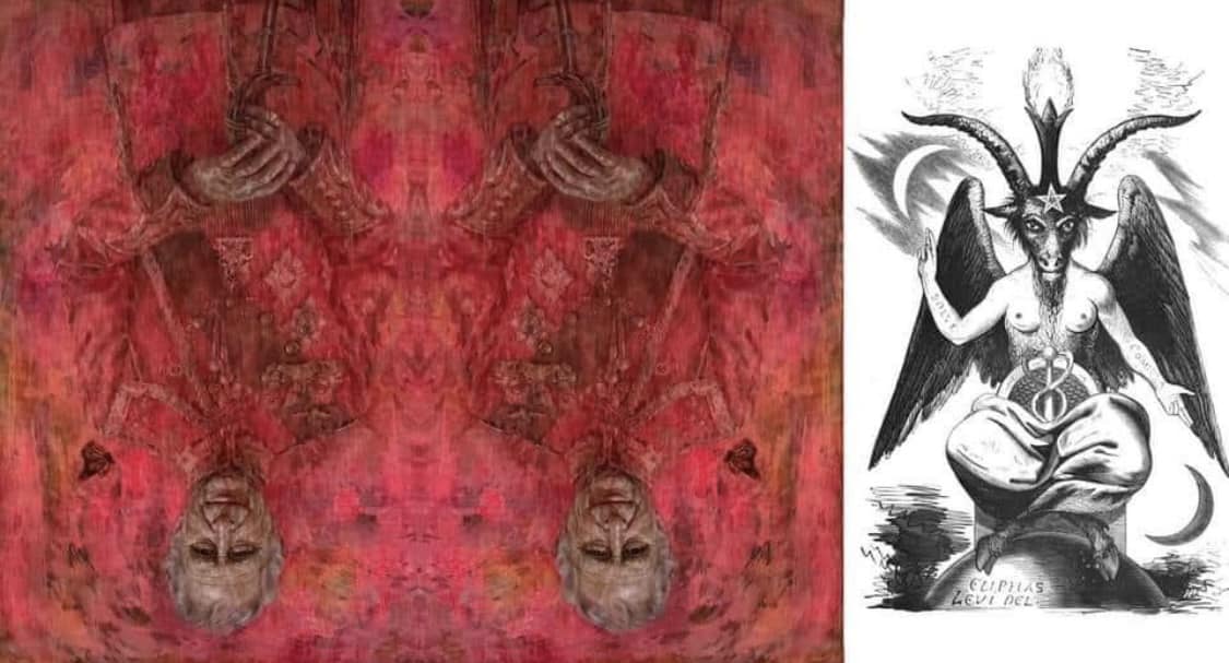 The best breakdown on the symbolism I have seen: The color red is associated with Satan, the monarch butterfly symbolizes mind control, and black eyes in a dream symbolizes a demonic entity.